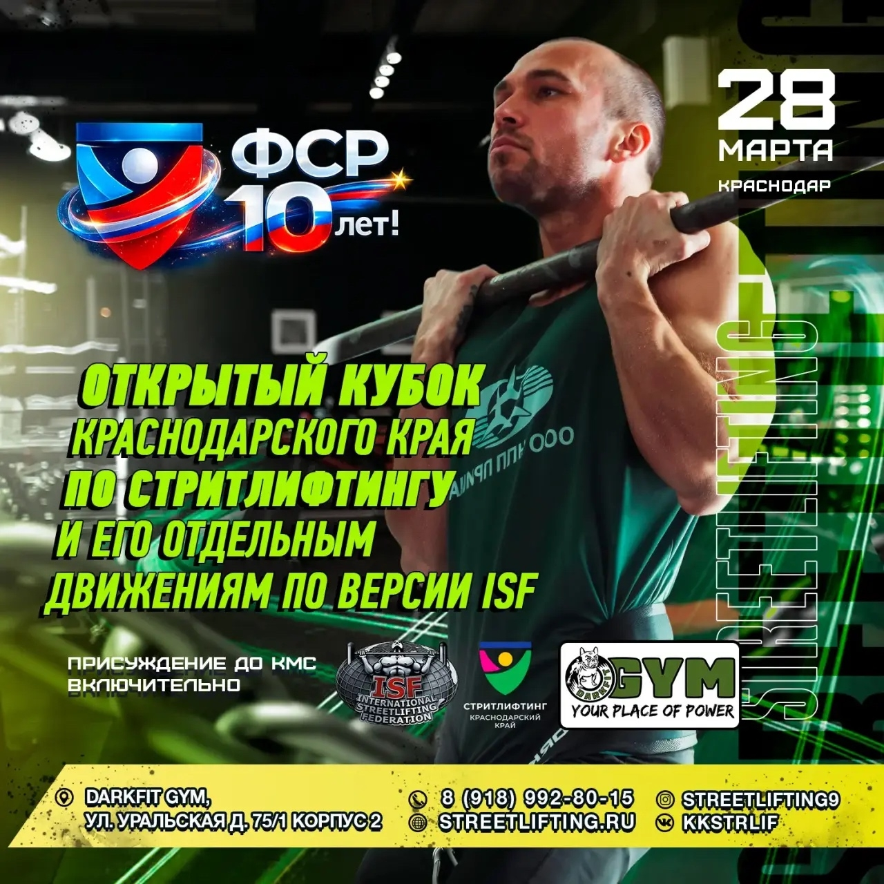 28 марта 2026 года в городе Краснодар состоится Открытый Кубок Краснодарского края по стритлифтингу по версии ISF — официальный региональный старт, объединяющий спортсменов различных возрастных и весовых категорий.