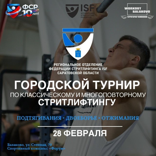 28 февраля 2026 года в городе Балаково состоится городской турнир по стритлифтингу по версии ISF.